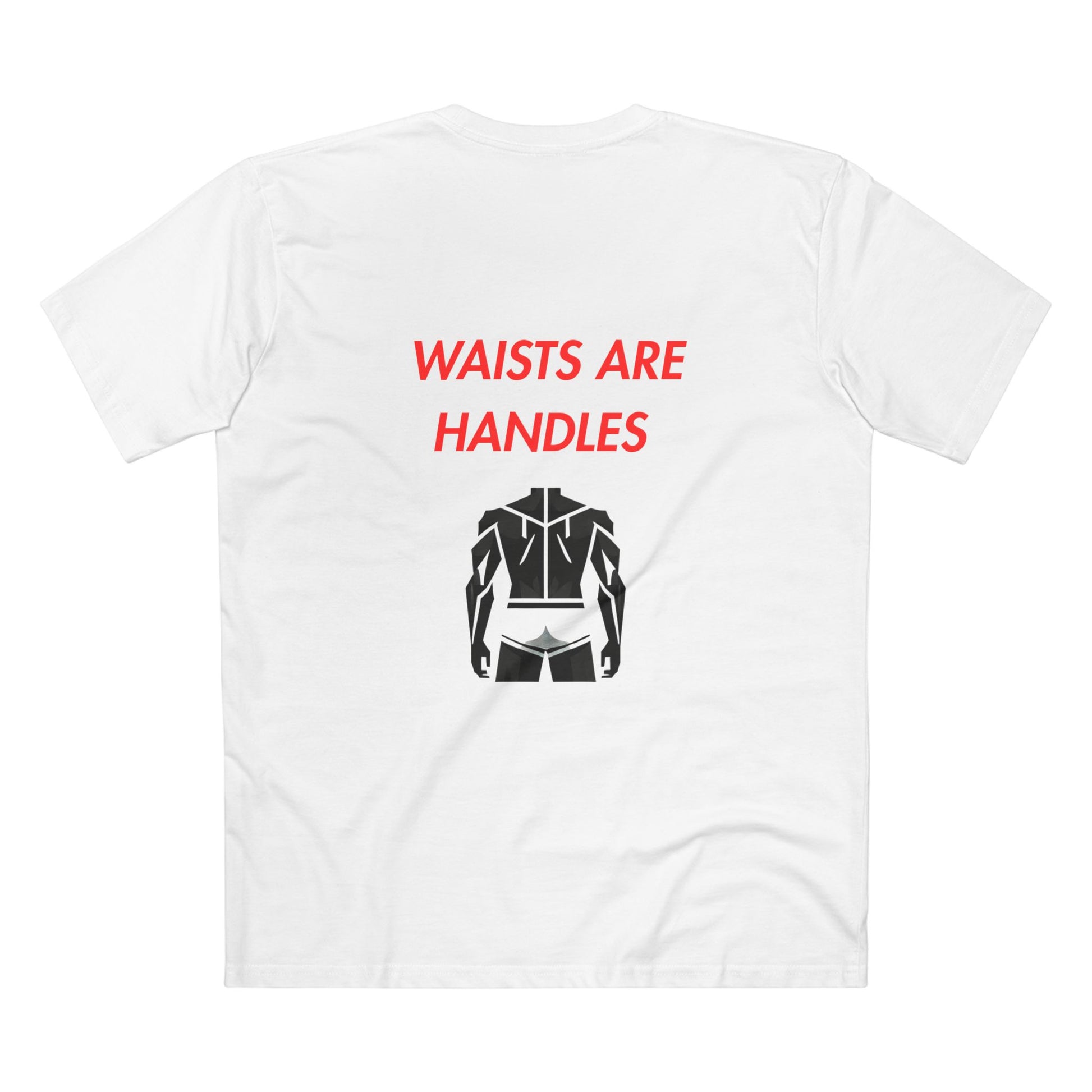 his tee doesn’t whisper—it grabs. "Waists are handles" is for the ones who like it rough, deep, and with both hands locked in. Whether you're pulling someone closer or getting dragged into position, this shirt makes it clear: you’re not here to play nice.